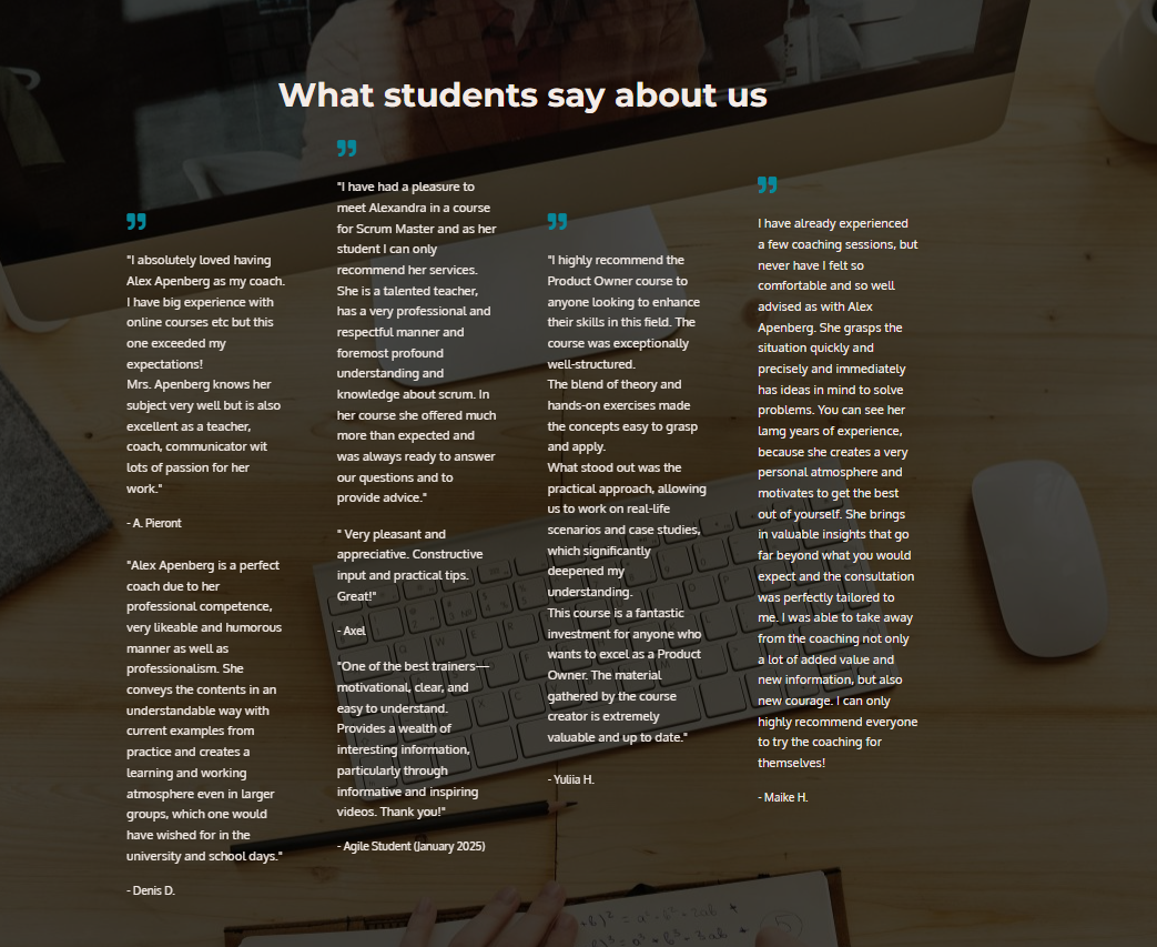 Entdecke unsere Kurse und Coaching-Angebote – entwickelt, um dich auf deinem Weg zur Zertifizierung und zu echtem Wachstum zu begleiten.